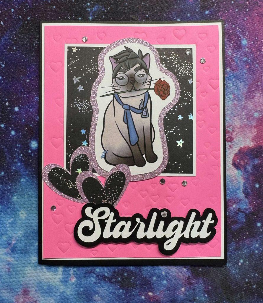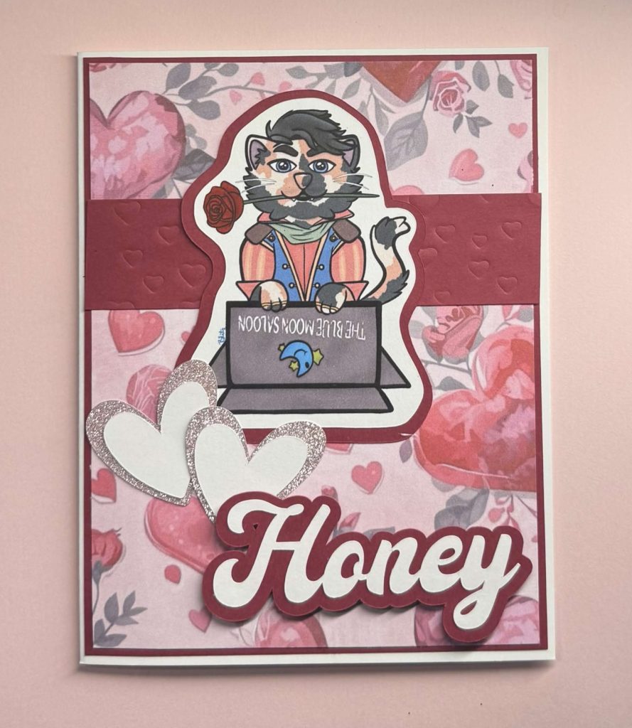 To honor them, I decided that I wanted to make Palentine’s cards, so I started writing Roses are red poems in the theme of each character, drew our favorite characters as cats, and turned them into these adorable cards using similar, but not exactly the same, sketches. I love how they turned out, especially once I decided to relax on the Valentine’s Day color scheme!